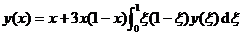 Solving for    1° In this special case, the integral equation can be reduced to a differential   equation with endpoint conditions y (0)=0, y (1)=1