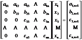 Note that whenever the main element is found here, the procedures such as row and row exchange and unknown order exchange are carried out. You can also put the steps of changing the order of unknowns after the n -1th step and do it together. You can also get the triangle's coefficient matrix .
