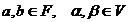[ Linear operations ]    Let F be a field whose elements a , b , c , ... as quantities; V be a set of objects of any kind whose elements are denoted by the Greek letters α , β , γ , ... . Determine the two algorithms : Addition of elements in 1