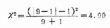 从表中资料可见有四种结果:(a)甲+乙+,(b)甲+乙-(c)甲-乙+,(d)甲-乙-;如果我们目的是比较两种培养基的培养结果有无差异,则(a)、(d)两种结果是一致的,对差异比较毫无意义,可以不计,我们只考虑结果不同的(b)和(c),看其差异有无意义,可以应用以下简易公式计算:
