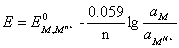 式(1.1)是电极电位的基本关系式。如果以常用对数表示,并将有关常数值代入,式(1.1)可写为