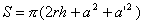 r,R分别为上,下底圆半径,h为高,l为母线