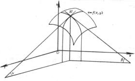 ¶þÔªº¯Êýu=f(x,y)±íʾһÇúÃæ,ͨ¹ýÇúÃæÉÏÒ»µãM(x,y,u)×÷һƽÐÐÓÚOxuÆ½ÃæµÄÆ½Ãæ,ÓëÇúÃæÓÐÒ»Ìõ½»Ïß,¾ÍÊÇÕâÌõÇúÏßÔڸõãµÄÇÐÏßÓëxÖáÕýÏò¼Ð½ÇµÄÕýÇÐ,¼´=.ͬÑù,ÓÐ= (ͼ5.5).