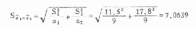 (3)计算各组均数,合并方差S2c及两均数相差的标准误Sχ1-χ2,然后求t值。