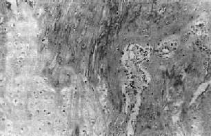 图17-1 骨痂 左侧为软骨性骨痂,右侧为类骨组织