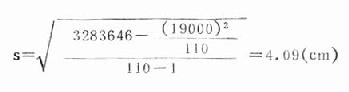 以上计算表明:S丙<S甲<S乙亦即乙组的变量度最大,甲组次之,丙组最小。 例18.11 求表18-2中110名20岁健康男大学生身高的标准差。 由表18-2,已知Σf=110,ΣfX=19000,再用第(2)栏乘第(4)栏后相加得ΣfX2。如本例,ΣfX2=163×163+165×660+……+183×366=3283646代入式(18.14)