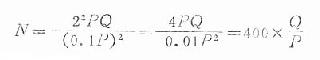 式中SE=标准误,P=某病的现患率,Q=1-P,N为样本数。 根据上述公式,可得到下列简便公式: N=400×Q/P 式中N=样本数,P=预期现患率或感染率,Q=1-P。 本公式要求允许误差为0.1P,95%可信限水平t=2。样本的感染率P与总体感染率P之间有差异d。P-p=±d=±t×SE。 SE=d/t。0.05水平,自由度为无限大时,t约为2。