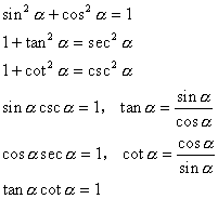 7. 正弦定理: 在一个三角形中,各边和它所对角的正弦的比相等,即: 8. 余弦定理: 三角形任何一边的平方等于其他两边平方的和减去这两边与它们夹角的余弦的积的两倍,即: