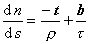 为挠率半径.这组公式的特点就是基本矢量t,n,b关于弧长s的导数可以用t,n,b的线性组合来表达,它的系数组成一个反对称方阵: