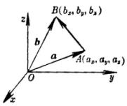 在几何中的有向线段就是一个直观的矢量.通常用空间中的有向线段AB来表示矢量.用长度表示大小,用端点的顺序AB表示方向.A称为始点,B称为终点,这个矢量记作,或用黑正体字母a表示.矢量的大小(或长度)的数值称为它的模或绝对值,用记号|a|表示.