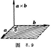 [矢量积(叉积、外积)a(ax,ay,az)b(bx,by,bz)|a|a|b|bab两矢量的夹角为,则定义a×b为两矢量的矢量积(也称为叉积或外积),它是一个矢量,即长度等于以ab为边的平行四边形的面积(8.9阴影部分)
