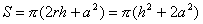 r为底面半径,h为高
