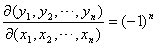 它们定义在某一n维区域D中,并关于自变量有连续偏导数,则由这些偏导数组成的行列式