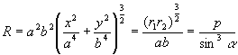 式中r1, r2为焦点半径, p为焦点参数, a 为点M(x, y)的焦点半径与切线的夹角.特别, 顶点的曲率半径