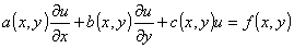 就是线性方程.在线性方程中,不含未知函数及其偏导数的项称为自由项,如上式的f(x,y).若自由项不为零,称方程为非齐次的.若自由项为零,则称方程为齐次的.