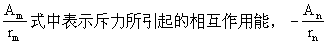 表示引力所引起的相互作用能,r是两相邻粒子间的距离。由于排斥能随距离的变化比吸引能迅速,因而m>n。Am、An、m、n的大小由晶体的结构和作用力的性质所决定。