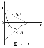【分子力】组成物体的分子间在距离相当近时所显示的相互作用力。这种相互作用在分子间距r<10-8米时才显示出来。当分子间距r<10-10米时,分子之间表现为斥力,而当分子间距处于10-8米>r>10-10米的范围内,分子之间又表现为引力。如图2-1所示。