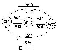 物态叫做“相”,通常物质是以三种形态存在。即固态、液态、气态,也可称为固相、液相、气相。物体的变化常叫做相变。或者说,在某一系统中,具有相同物理性质均匀的部分亦称为相。相与相间必有明显可分的界面。例如,食盐的水溶液是一相,若食盐水浓度大,有食盐晶体,即成为两相。水和食油混合,是两个液相并存,而不能成为一个相。又如水、冰和汽三相共存时,其温度为273.16K(0.01℃),压强为6.106×102帕。由于在三相点物质具有确定的温度,因此用它来作为确定温标的固定点比选汽点和冰点具有优越性,所以三相点这个固定温度适于作为温标的基点,现在都以水的三相点的温度作为确定温标的固定点。