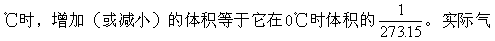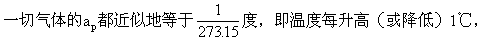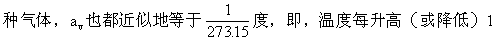 式中V为气体在t℃时的体积;V0为0℃时的体积;av是在压强不变时,气体体积随温度变化的系数,称做体膨胀系数。av可由实验测定,对各