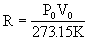 式中P0表示在零摄氏度时的压强,通常选P0=1标准大气压,V0表示1摩尔理想气体在零摄氏度和1标准大气压下的体积,等于22.4138×10-3米3/摩尔。所以普适气体常数的数值为