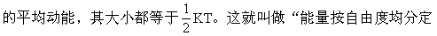 理”,简称为“能量均分定理”。能量均分定理,也是对大量分子无规则热运动统计平均的结果。对于个别分子来说,它在任一时刻的总动能,完全可能与根据能量均分定理所得出的平均值有很大的差别,而且每一