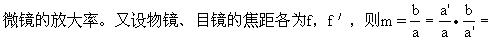 【物像公式】 描述物像位置以及它们和透镜或透镜组的特征量之一(焦距)之间的关系式。对一个薄凸透镜可以认为是由底面朝向透镜中央的许多棱镜的集合,而这些棱镜的顶角是很小的,对于顶角很小的棱镜来说,如果构成棱镜的材料的折射率为n,顶角为A,那么在近轴光线的条件下,其偏向角δ为常数(n-1)A。当棱镜给定后,近轴光线的偏向角δ是不变的。我们可以利用此关系来推导薄透镜的物像公式。如图4-13a所示,设PM为平行光束所任一条光线在M点入射,而OM=h,则出射光线MF′必通过透镜的焦点F′,OF′=f,f为透镜的焦距。根据近轴光线的条件,即f>>h,偏向角近似为