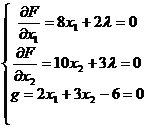 F = ( )+ λ ( 2 x 1 +3 x 2 - 6)