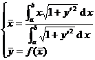 where s represents the curve equation on , s represents the length of the curve on , d s is the differential of the arc, and is the center of gravity of the curve