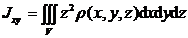 [ Moment of inertia of a general object ]  Let the density ρ of the object V = ρ ( x, y, z ). If the moment of inertia of the object to the coordinate plane is respectively ; the moment of inertia of the object to a certain axis l is ; the rotation of the object to the coordinate axis Inertia respectively ; the moment of inertia of the object about the origin is , then