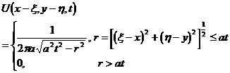 2 ° For a sphere (the center of the sphere is O and the radius is a ), the basic solution for u = 0 is , r is the distance between P ( x , y, z ) and the parameter point M ( , , ) , and M is about the sphere. Invert the point M 1 , record r 1 as the distance between M 1 and P , then the Green's function is ![]()